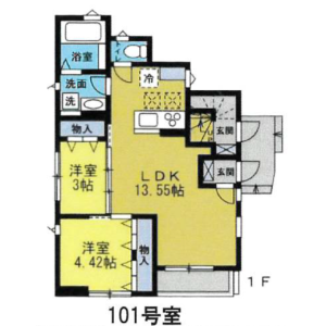 1Fは、賃料:149,000円 共益費6,000円 間取りは2LDK(50.5㎡)