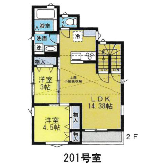 2Fは、賃料:173,000円 共益費6,000円 間取り2LDK+ロフト(50.5㎡ロフトは含まず)